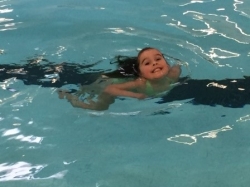 Mom, Kat, says, “Swimming is a skill that we feel is important for our kids to master. We hope to keep Kaylee in swim until she is an independent swimmer and beyond. Kaylee is now 4 years old and has been enrolled in just about every session since May of 2014. Kaylee loves the goofiness of class and her teachers.